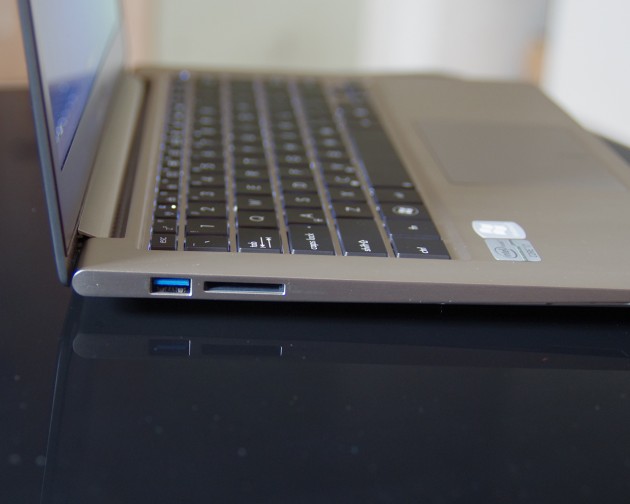 Arvuti paremal küljel leiame laadija pesa, 2 USB 3.0 porti, mini-VGA väljundi ning 3.5mm heliväljundi. Mikrofon on arvutil integreeritud ning selle sisendist eraldi on loobutud. Vasakul küljel peitub veel üks USB 3.0 port ning mälukaardilugeja. Viimasesse sobivad SD/SDHC ning MMC tüüpi kaardid.